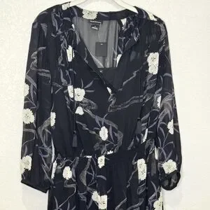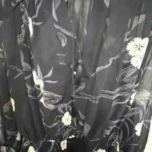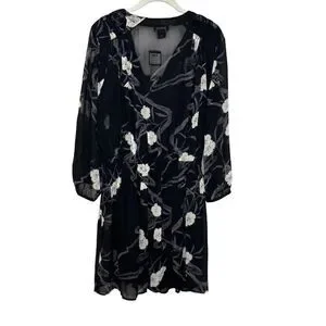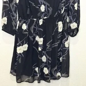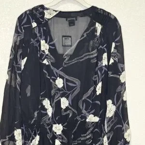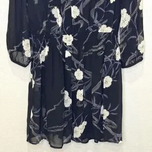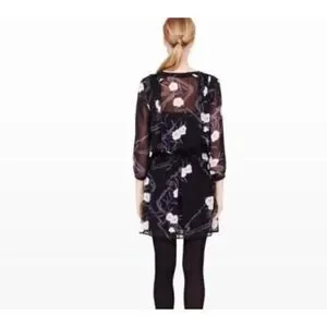 Club Monaco Roanna Dress Womens 4 Black Floral Silk Long Sleeve Mini Boho Chic