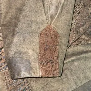 No rips, tears or scratches. Small stain on right inside lining near arm pit. No bleed through. See photos before ordering.