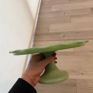 Martha Stewart Highbrook 11” Jadeite Ruffle-Edge Glass Cake Stand