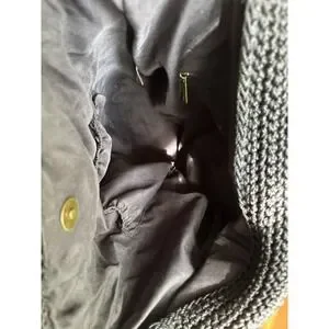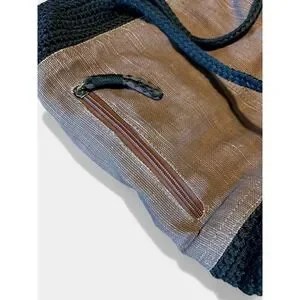 Adjustable drawstring black crochet rope weaved through top for easy opening/cinching closure.