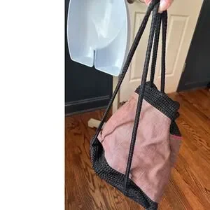 The Sak Sayulita Y2K bohemian crochet drawstring backpack / bucket bag.