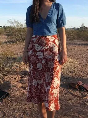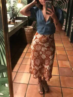 Madewell sunflower slip skirt size 0 (but a bit stretched out) in burnt orange. Slip style, silky material with elastic waistband.