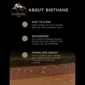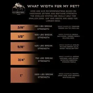 This hand-crafted, waterproof, stink proof, standard leash with traffic handle is done in standard USA-made Beta Biothane, which measures 5/8" wide and approximately 1/8" thick and has a 625 lb. break strength.