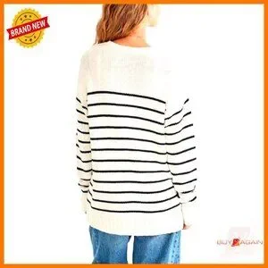 Oversized Crewneck Sweater Chunky Stripe Relaxed Fit Y2K Chic Minimal Pullover