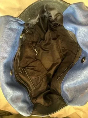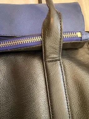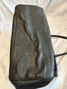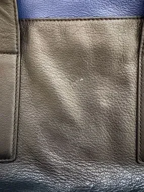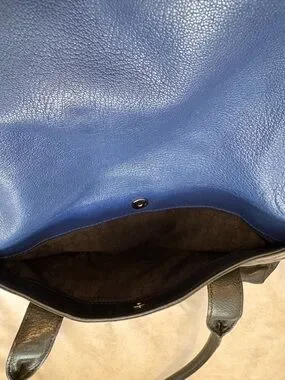 Good pre-owned condition. Some wear to exterior leather and minor marks on blue panel as shown in photos. Missing original Michael Kors logo charm. Interior is clean.