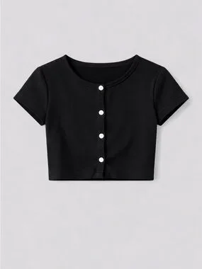 cropped silhouette with a flattering, body-hugging fit. Vintage sourced shell buttons. Crafted from a breathable 100% cotton knit.