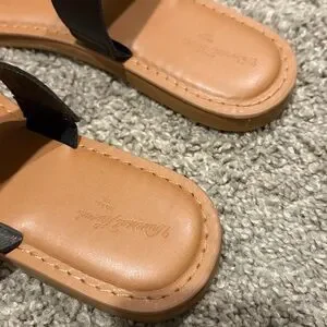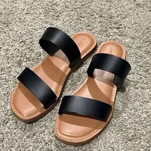 Stylish double-strap slides from Universal Thread. Smooth black straps for a modern look. Tan cushioned footbed for comfort. Easy slip-on design for everyday wear.