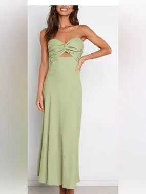 Petal & Pup Rosetta dress Sage Green Strapless Twist Maxi Dress