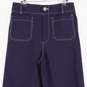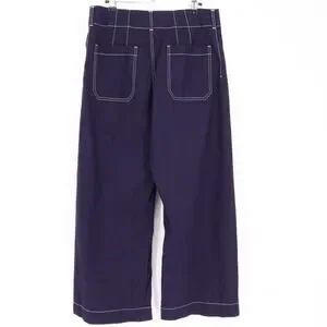 Maeve Women's The Colette Wide Leg Cropped Pants Size 30 Navy Contrast Stitch