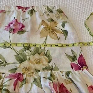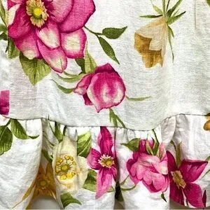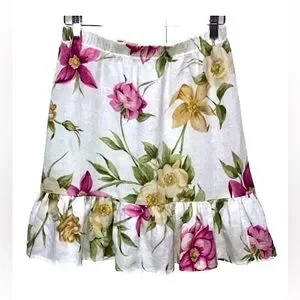 Hot Cotton linen mini skirt, floral print with ruffle, white & pink, S or M