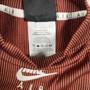 The Nike Air Cropped Tank in ribbed brown with a mock neck is a stylish and comfortable top for women in size XS. Made of polyester, this sleeveless tank features a pullover closure and is perfect for casual occasions in the spring and summer seasons. The solid color and cropped style give it a trendy and versatile look that can be easily paired with other items in your wardrobe. With the trusted Nike brand, you can be sure of both quality and fashion-forward design in this versatile piece.