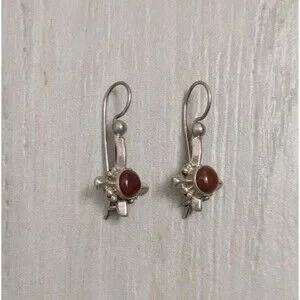 925 Sterling Silver Artisan Sterling Silver Carnelian Earrings Israeli Drop
