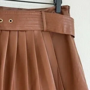 Zara Brown Pleated Leather-Look Mini Skirt with Belt