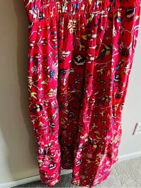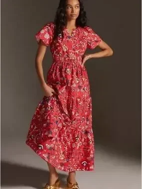 Anthropologie Maeve Somerset Maxi Dress M in Red Geo Floral Print Cotton Dress