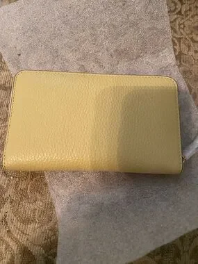 The Coach X Disney Belle Medium Zip Wallet in Yellow Pebbled Leather is a stylish accessory for women featuring the beloved Disney character Belle. Made from high-quality leather, this wallet is both durable and fashionable, perfect for adding a touch of Disney magic to your everyday routine. The bright yellow color adds a fun and vibrant touch to any outfit, making it a standout piece in your collection. Comes from a smoke free home. NWT. See Photos. Sooo Cute