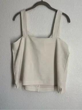 J.CREW Women's Ivory Knit V-Neck Button Front Tank Top Sleeveless Regular L