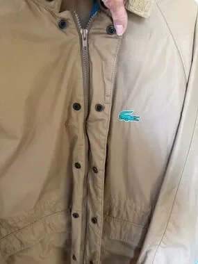 Lacoste Men's Tan Lightweight Raincoat/parka with Green Crocodile Logo