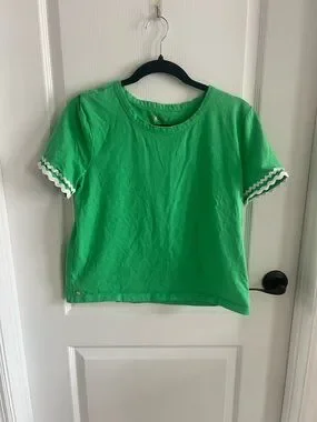 Lilly Pulitzer Bright Green Clairmont Top with White Ric Rac Trimmed Sleeves