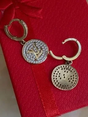 New Real Solid 14K yellow gold Drop Hoop Earrings designer