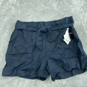 Lauren Ralph Lauren Womens Linen Shorts Size 18 Navy Belt & Pockets NWT 3795