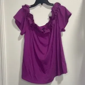 Lane Bryant Size 22/24 Fuchsia Pink Off The Shoulder Blouse Top Shirt PRE OWNED AND IN GOOD CONDITION WITH MINOR SIGNS OF COSMETIC WEAR, PLEASE REFER TO PICTURES TO VIEW THE CONDITION!