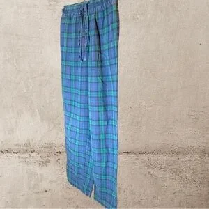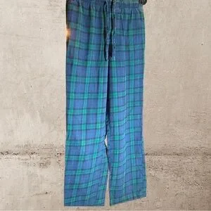 Croft & Barrow green/blue flannel plaid, lightweight flannel pajama bottoms/pants. Elastic waist with drawstring. Functional pockets at hips. Good preowned condition, no holes or stains, see photos!