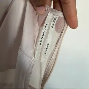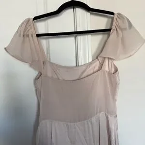 Keywords: Anthropologie dress, satin sheath dress, flutter sleeve dress, neutral midi dress, women’s dress size 4, wedding guest dress, cocktail dress, elegant dress