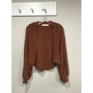 Free People FP Beach Adams Set Shrug Cardigan Rust Open Front Oversized XS Boho