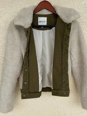 Madewell Sherpa Fleece Snap Jacket Womens Small Ivory Faux Shearling Coat