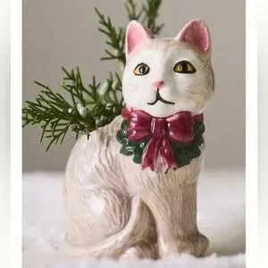 Anthropologie Vintage Inspired Cat Stoneware Vase