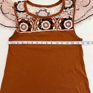 Anthropologie Rust Brown Crochet Embroidered Blouse