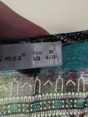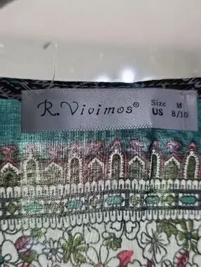 R. Vivimos Womens Dress Buttons Front Slit Teal Floral Tab Sleeves Sz M 8/10 EUC. Measurements in pics. Pre-owned, very good condition.