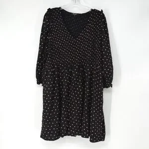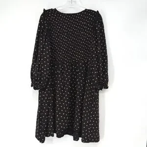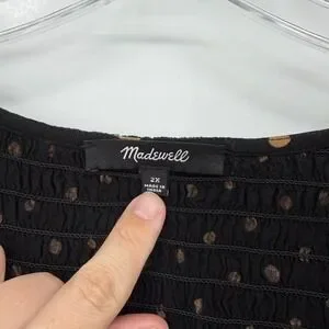 Madewell 2X Black Brown Polka Dot Smocked Babydoll Dress Midi Boho Peasant