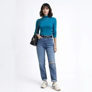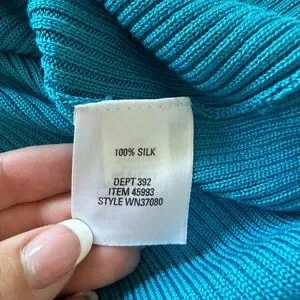 Elegant teal ribbed knit top. Ideal for layering. In perfect condition! So beautiful on! The color is absolutely amazing. The quality is unmatched with 100% silk! So soft and luxurious! #silk #quietluxury #coastalcowgirl #cottagecore #cabincore #100%silk #winter