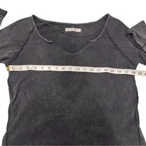 WE THE FREE Black Charcoal Ribbed Layer Up Long Sleeve Tee SZ Medium Grunge