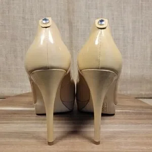 Michael Kors Peep Toe Platform Heels Nude Patent Leather Pumps Women's 9M