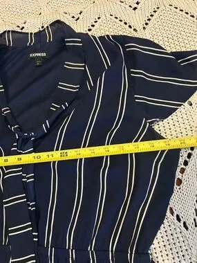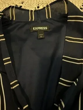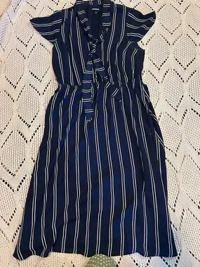 Express Blue Stripe Tie Neck Midi Dress Sz L