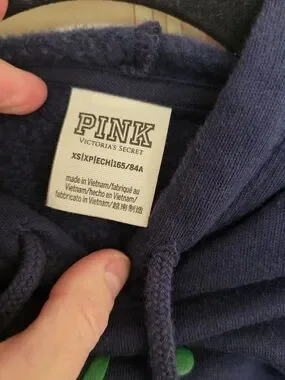 PINK Navy Cropped Hoodie & Jogger Set with Green Script