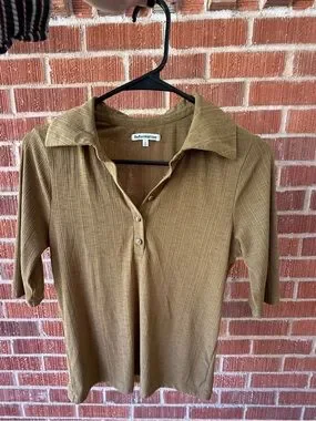 Reformation Carmel brown polo blouse top