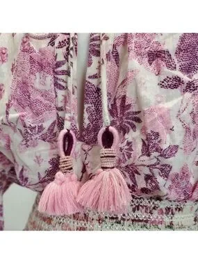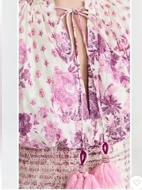 Absolutely stunning Hemant & Nandita “Suki” maxi dress in a soft pink floral print. This piece embodies the brand’s signature bohemian-luxe aesthetic with intricate detailing, romantic silhouettes, and elevated craftsmanship.