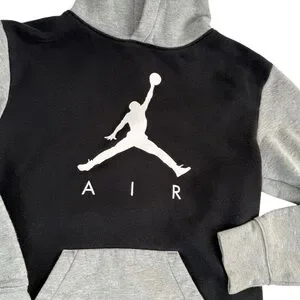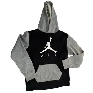 Jordan Jumpman Air GFX Kids Pullover Hoodie gray big boy kids 12 13 years top in great condition. Minimal signs of wear, some light pulling. Classic comfy athletic athleisure streetwear style with kangaroo pouch and color blocking.