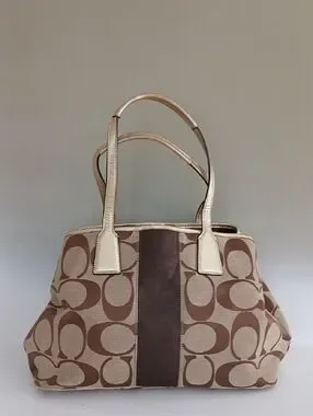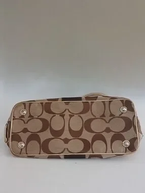Coach Signature Brown Canvas Tote with Kiss Lock