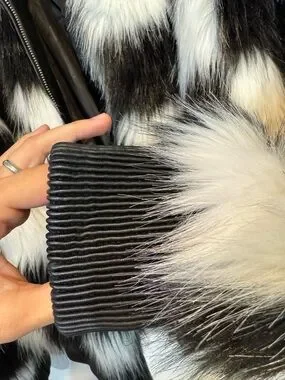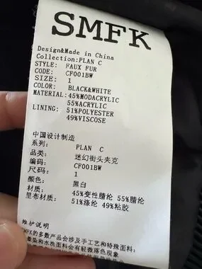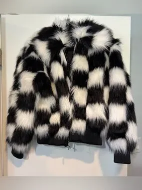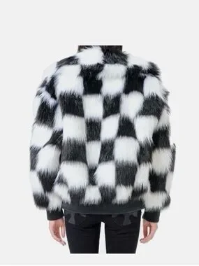 SMFK Plan C Checkered Faux Fur Bomber Jacket Black White Size 1