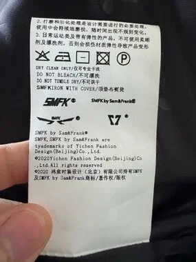 The lining is embossed with the SMFK monogram logo. This is a heavy, high-end jacket that perfectly blends luxury with a grungier streetwear vibe.