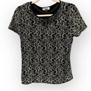 Calvin Klein Black Top with White Floral Embroidery - Size Medium