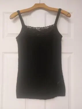 Lace-Trim Black Open-weave Camisole Tank for Women