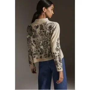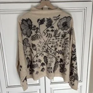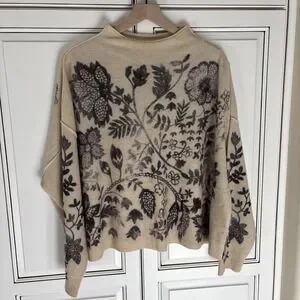 Rare Anthropologie The Alani Soft Cashmere Pilcro Mock-neck Sweater Beige Gray Floral Women's Size Large