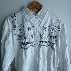 Vintage Women White Embroidered Button-Up Shirt