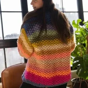 Saachi Mayflower stripe crocheted cardigan Multicolor Chunky Knit Sweater