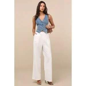 Lulus Andrey Cream Floral Embroidered Straight-leg Trouser Pants White - Size S